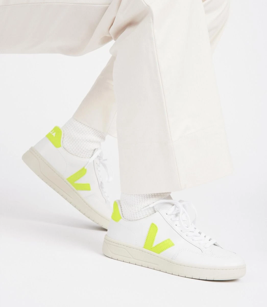V-12 LEATHER WHITE JAUNE FLUO